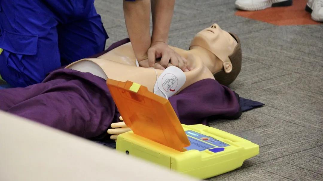 藍天宣教組組長陳杭州通過講解,為員工樹立了“時間就是生命“的核心觀念。從了解創(chuàng)傷、出血、窒息、淹溺等日常意外風(fēng)險,到創(chuàng)傷救護技術(shù)——各類包扎法,以及海姆立克急救法、CPR(心肺復(fù)蘇)和AED(自動體外除顫器)急救術(shù)的示范并演練,使大家了解了“黃金四分鐘”的重要性,并掌握了精確的急救技能。