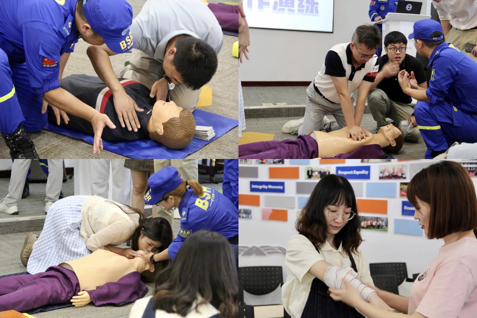 為增強員工掌握現(xiàn)場急救知識和基本操作技能,在專業(yè)急救人員到達之前,面對突發(fā)事故能立即進行自救和互救,避免因搶救不及時或救護不當(dāng)造成的傷亡,達到及時挽救生命,減輕傷殘的目的,我司特邀鄞州區(qū)藍天應(yīng)急救援隊開展了理論+實操雙結(jié)合的日常急救知識課堂。